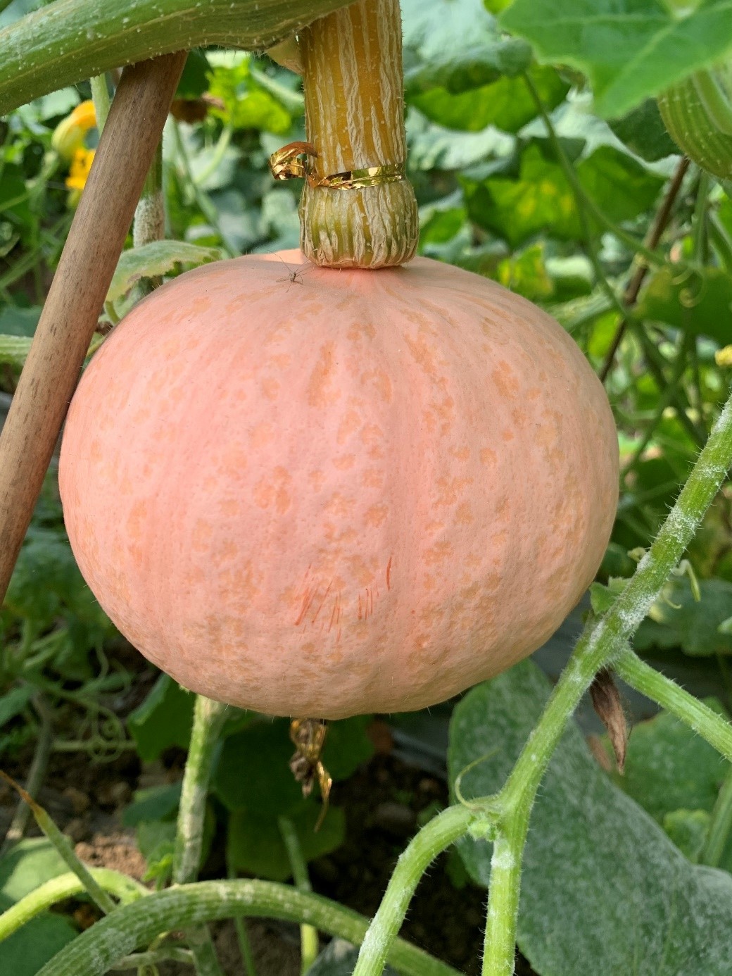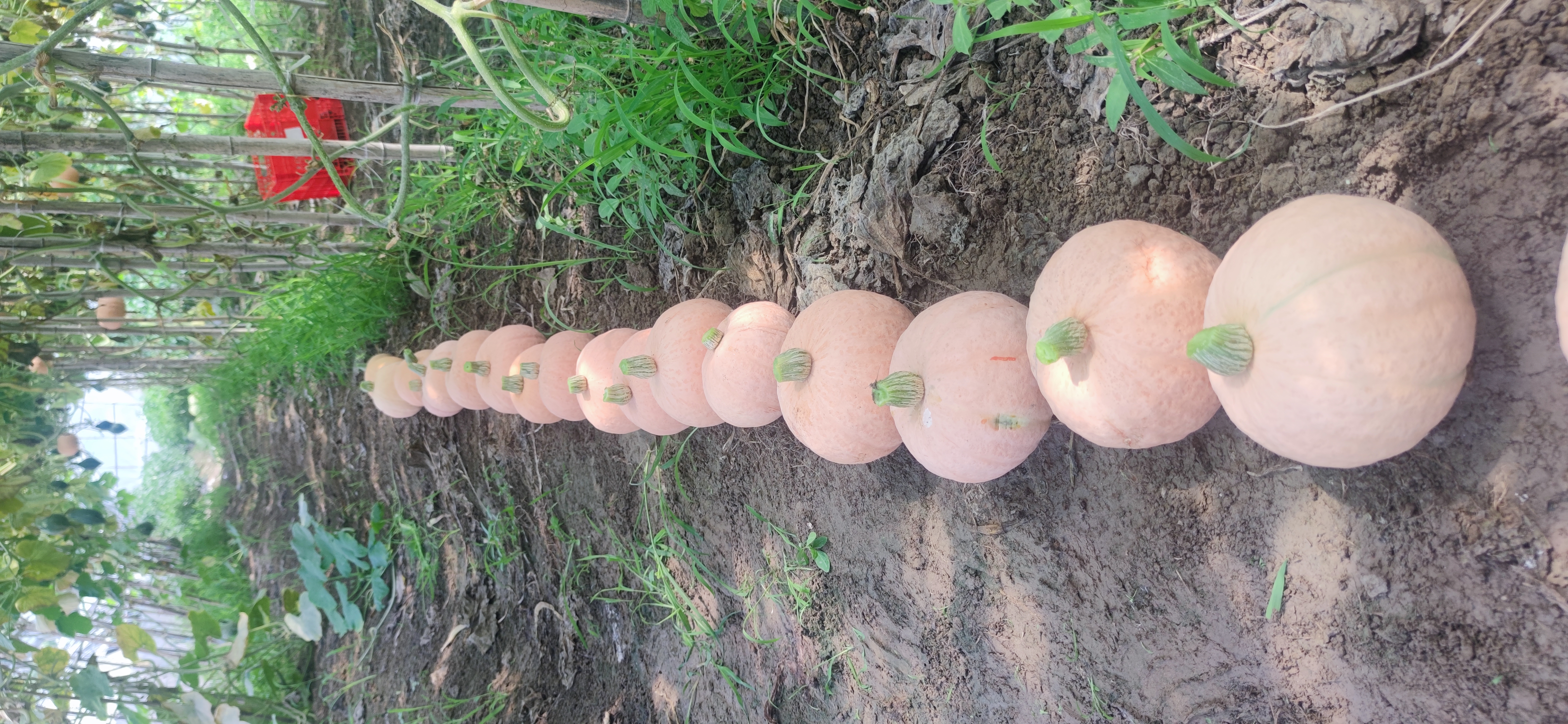 Mid-maturing, vining plant with round fruit. The fruit is pink, with orange-yellow flesh, dense texture, floury consistency, strong sweetness, good shape, and high commercial value, with a yield of about 2,500 kg per mu.